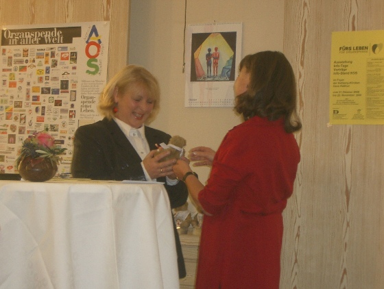 Auch Monika Strätz-Stopfer bekam einen Organbären als Geschenk. |