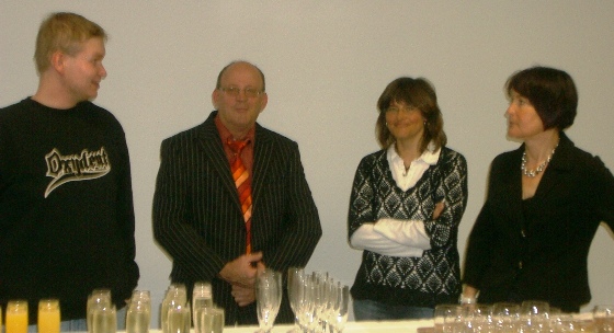 Gemeinsam nach der Eröffnung der Ausstellung vor der Infowand der IG. |