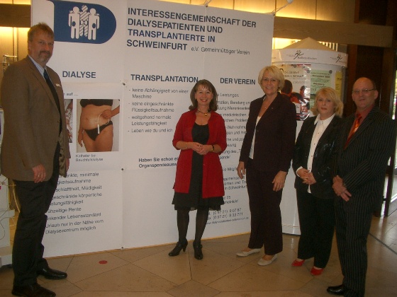 Die Veranstalter der Ausstellung mit der Schirmherrin Susanne Kastner (dritte von links), der Vizepräsidentin des Deutschen Bundestages. Der dritte Bürgermeister Haßfurts, Reiner Schuster (vlnr.), dahinter der Vorstandsvorsitzende der Haßberg-Kliniken, Stephan Kolck, der stellvertretenden Landrat Bernhard Ruß, die Vorsitzende der Interessengemeinschaft der Dialysepatienten und